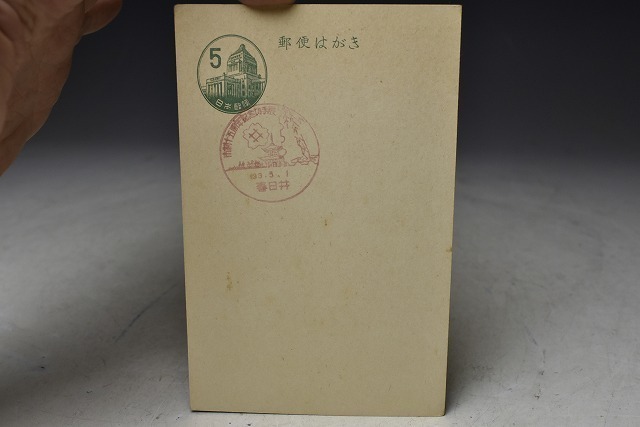 - 【葉書】 郵便はがき 5円 国会議事堂の絵 春日井の消印あり 昭和33年か 記念切手展