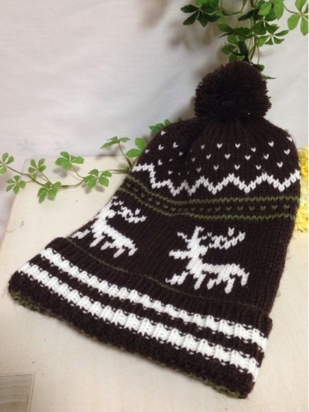 - ★☆トナカイ柄の可愛いニット帽・幼稚園サイズ・茶色☆★