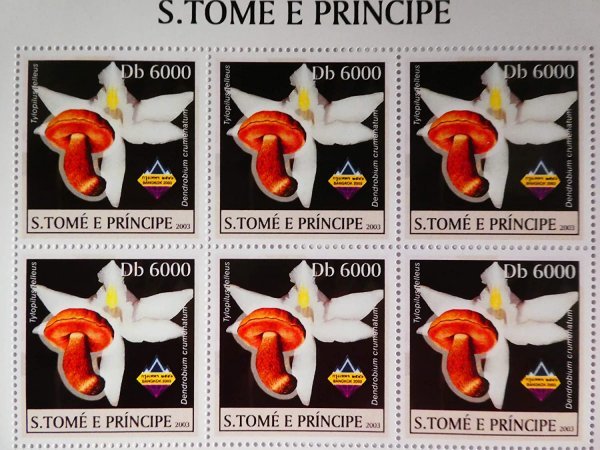 - サントメプリンシペ切手『きのこ/花』6枚シート 2003 f
