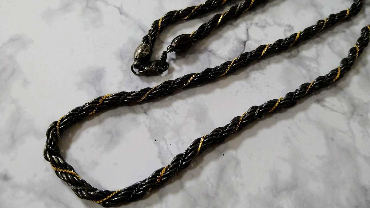 - □メタリックグレー×ゴールドカラー・ツイストネックレス□