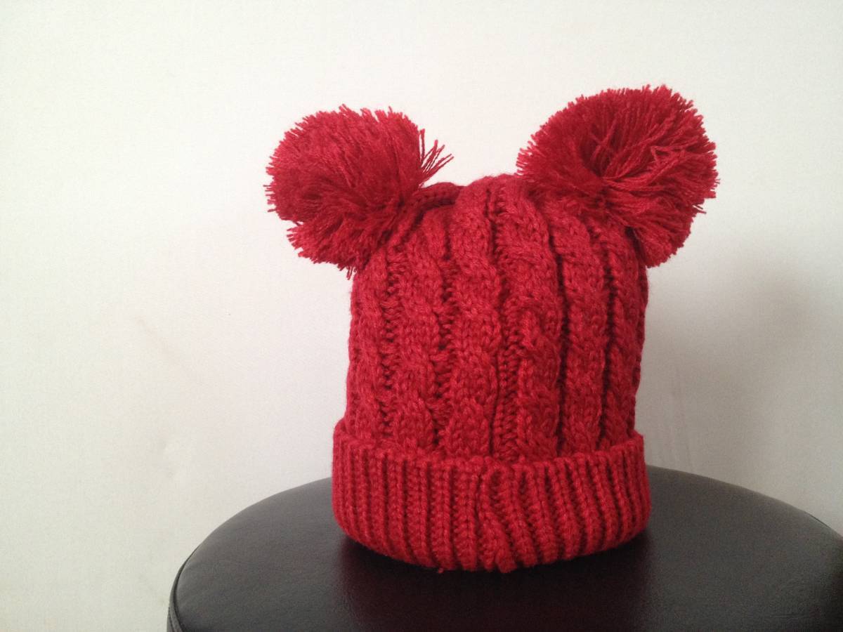- ◆赤◆可愛い両サイドポンポン付きニット帽◆ベビーサイズ◆9346