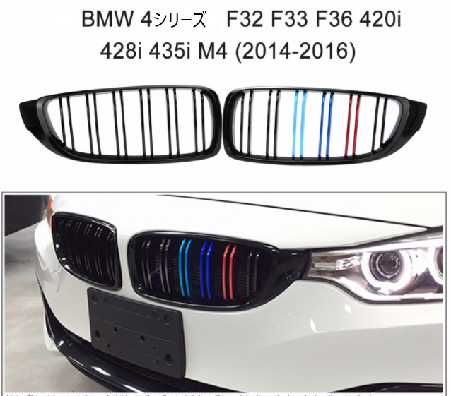 - D073 BMW 4シリーズ F32/F33/F36/420i/428i/435i/M4 2014-2016 トリコロールフィングリル ダブルフィン 純正互換社外品