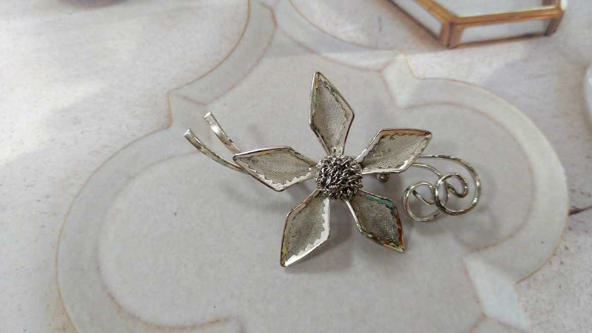 - □訳あり□シルバーカラー・フラワーモチーフ ブローチ□