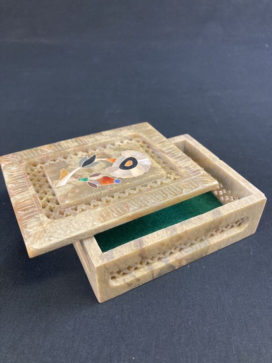 - 【A1561】ジュエリーボックス 象嵌 長方形 アンティーク 小物入れ 石製 透かし彫り オシャレ