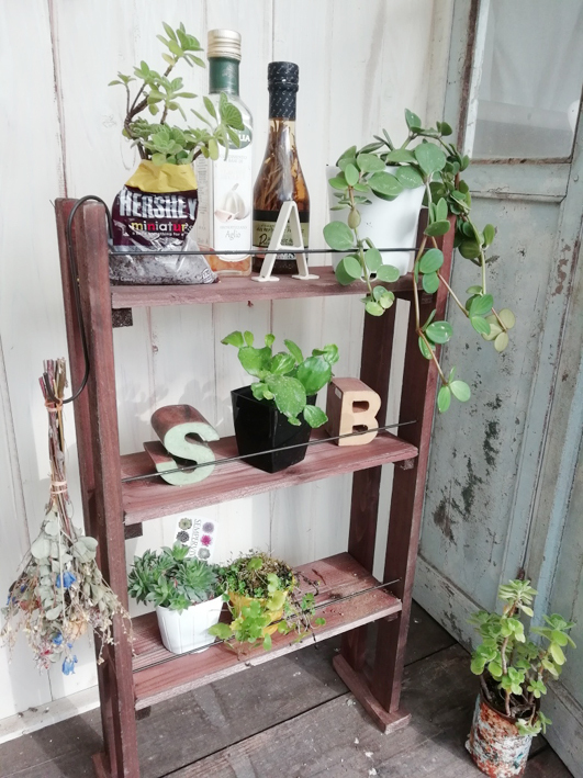 - 木製シャビーな小物飾り棚 ☆ハンドメイド レトロ グリーン ガーデニング 多肉植物 コレクションケース
