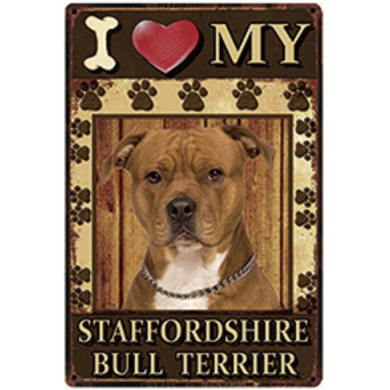 - A1401 メタル サイン ブリキ 看板 金属 プレート パネル 店 注意 かわいい 動物 ペット 愛 犬 I LOVE MY ブルテリア 3249
