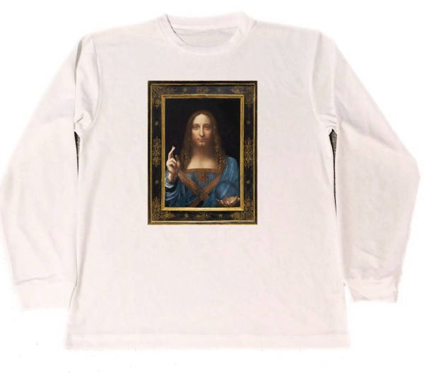 - レオナルドダヴィンチ ドライ Tシャツ 名画 絵画 レオナルド・ダ・ヴィンチ サルバトール・ムンディ ロング ロンT 長袖