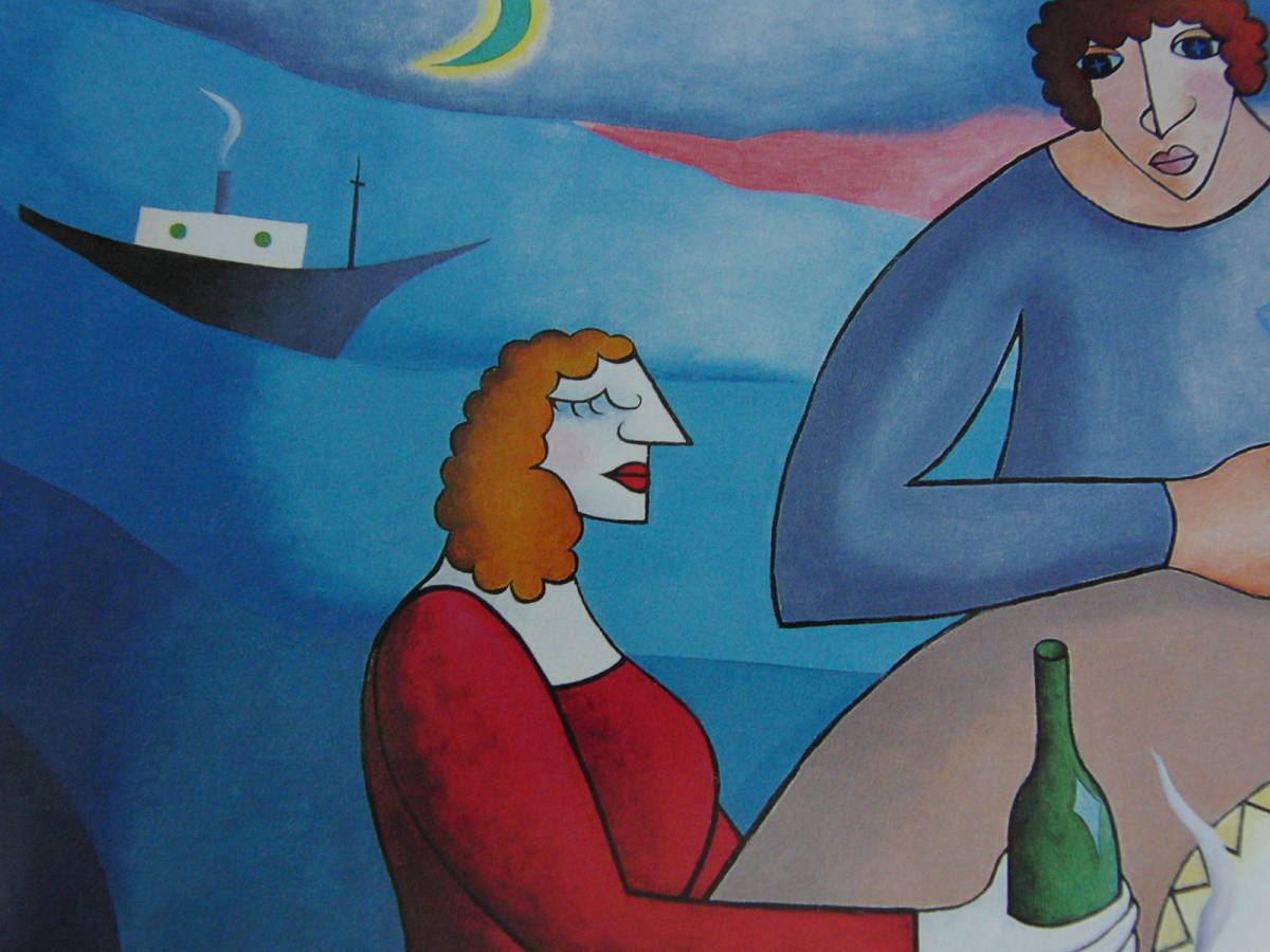 - 西岡一郎、〈港の恋人たち〉、希少画集画、高級新品額・額装付、状態良好、送料無料