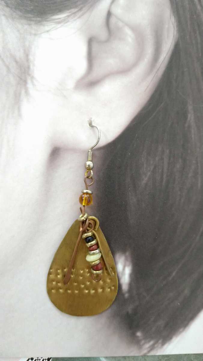 - □エスニック&アンティーク感□くすみゴールドカラープレート&ビーズ・揺れるピアス□
