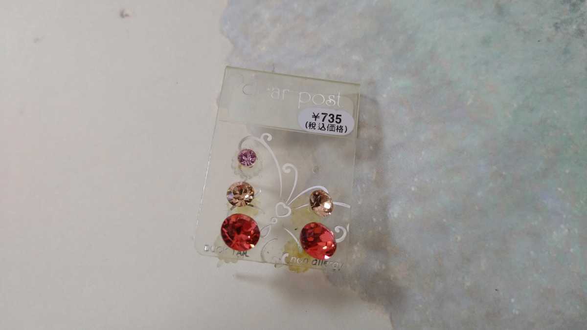 - □クリアピンク・オレンジ・レッド・多面カットビジュー・ピアス5個セット□