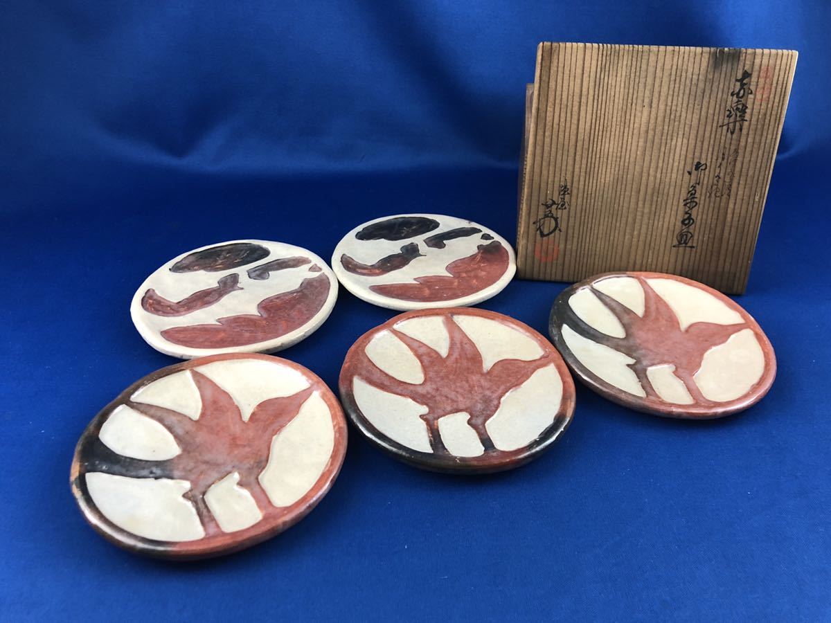- ◆茶道具◆時代 在銘 赤楽 菓子皿5客揃◆共箱