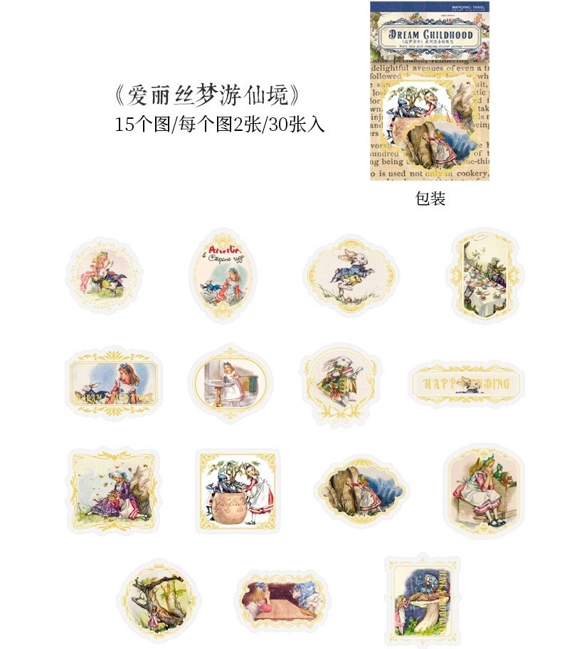 - ◆海外ステッカー フレークシール No6-2 金箔 ゴージャス 童話・メルヘン アリス 手帳・日記・ジャンクジャーナル・コラージュに