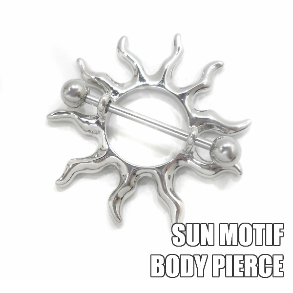 > YGG★太陽 SUN フレア ボディピアス 14G 14ゲージ ストレート バーベル シルバー へそピ ネイティブ サンフレアー 銀 1個