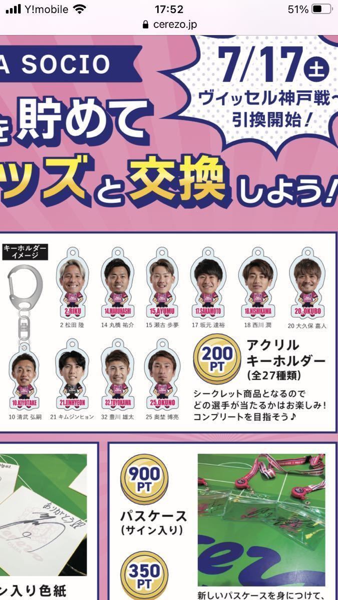 > 2021 セレッソ大阪 新井直人 ファンクラブ会員限定 アクリルキーホルダー SAKURA SOCIO サクラソシオ