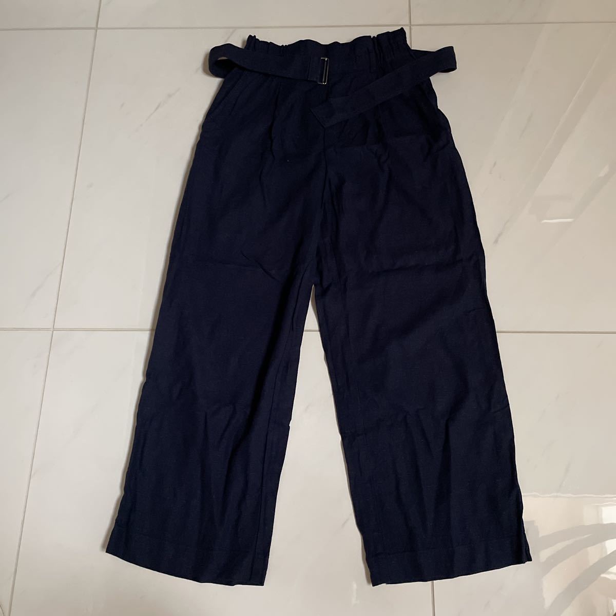 - ユニクロ ワイドパンツ 紺色 リネンパンツ S 定価4900円位 送料無料