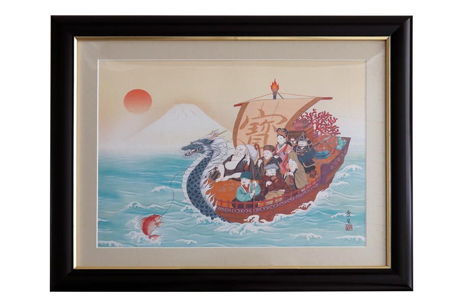 - 額 七福神 龍 和風 モダン 飾り 縁起物 インテリア 北山歩生 日本画 中