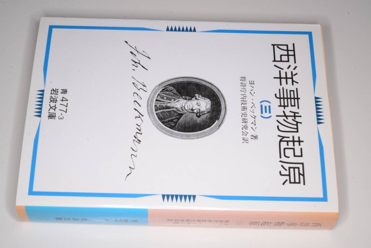 > 岩波文庫● 西洋事物起原 ③ (ヨハン ベックマンJohann Beckmann原著, 特許庁内技術史研究会 翻訳) 2000 岩波書店 版元品切れ