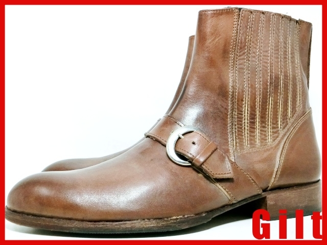 > 即決★美品 イタリア製 CARLO MEDICI★39=24.5cm レザーサイドゴアブーツ カルロメディチ メンズ 茶 ブラウン 本革 本革 ドレス シューズ