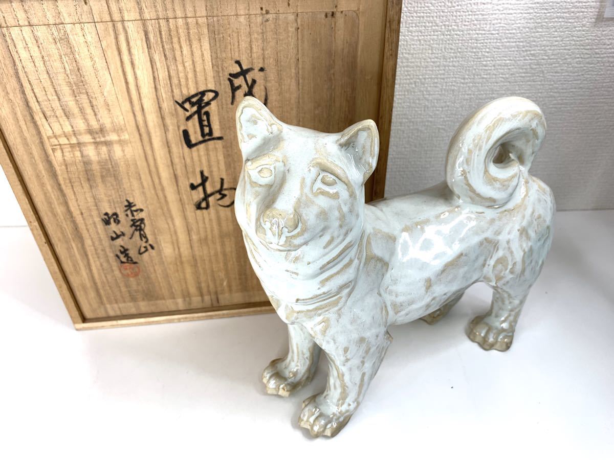 - 極美品▲赤膚焼 大塩昭山 戌 置物 犬 インテリア 銘あり 木箱入 管理2109 H-12