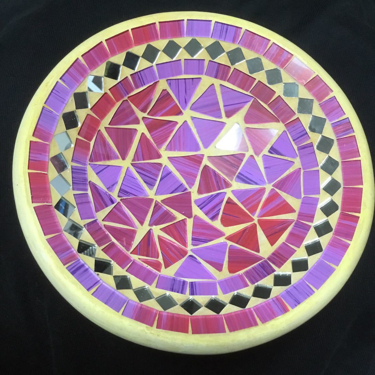 - インドネシア製モザイクトレイ アクセサリー小物入れ鏡ミラー土器陶器粘土割れ物