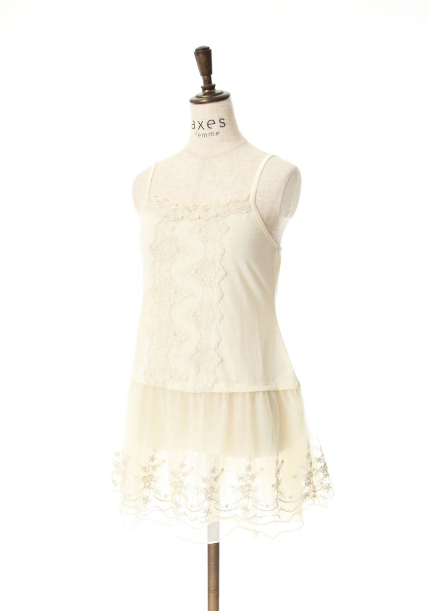 > 410◇ゴージャスレースロングキャミ 生成り キナリ ベージュ axes femme アクシーズ ファム TS2X491