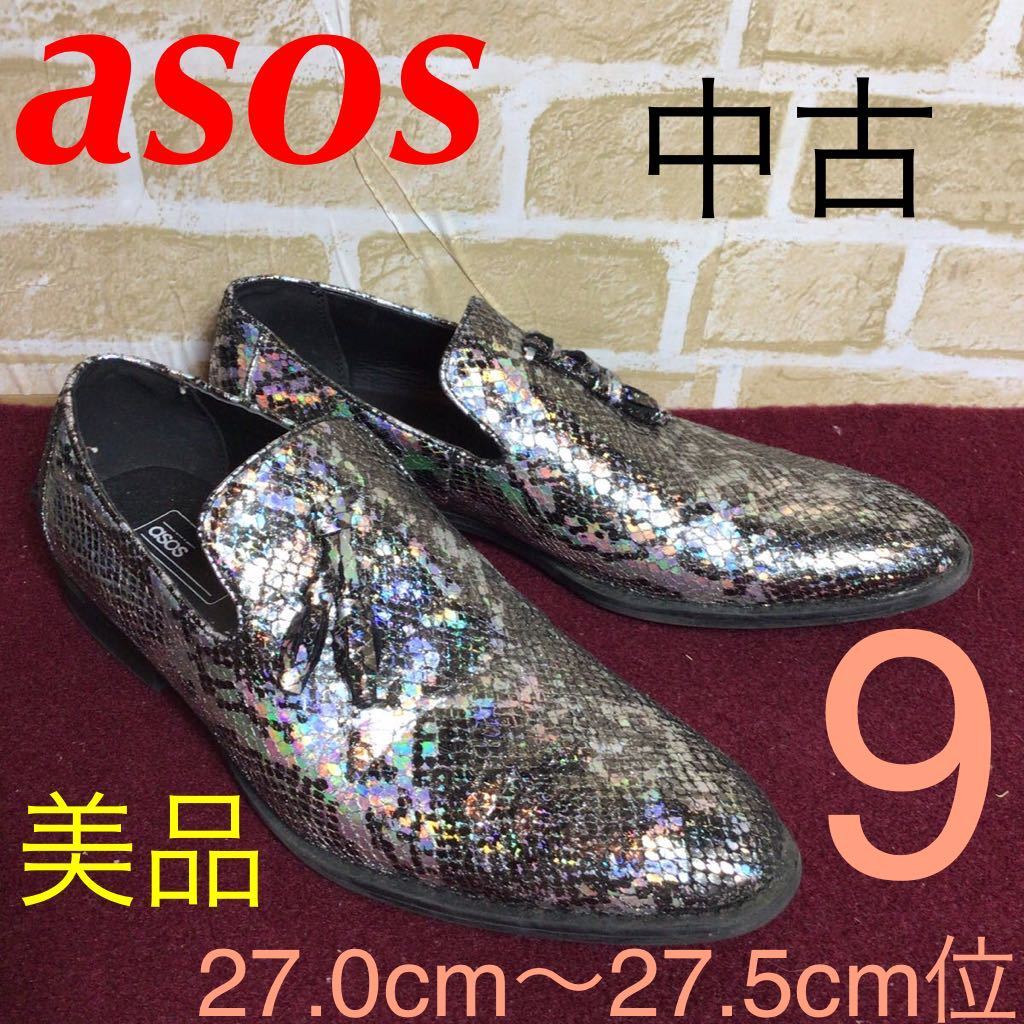 - 【売り切り!送料無料!】A-138 asos!エイソス!パイソン柄ローファー!9 27.0cm~27.5cm位!ブラック!シルバー!キラキラ!派手!美品!中古