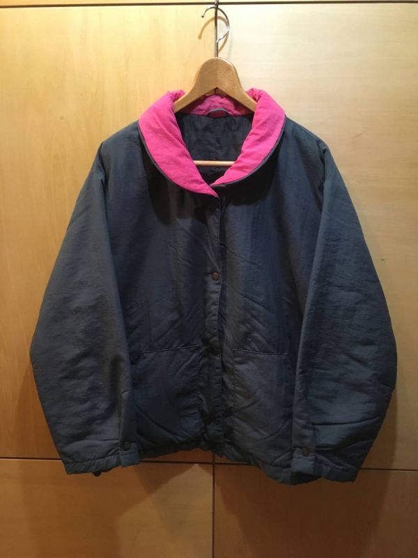 - 80s ヴィンテージ 英国製 St. Michael ナイロン ショールカラー ジャケット レディース XL UK 古着 ビッグサイズ グレー ピンク