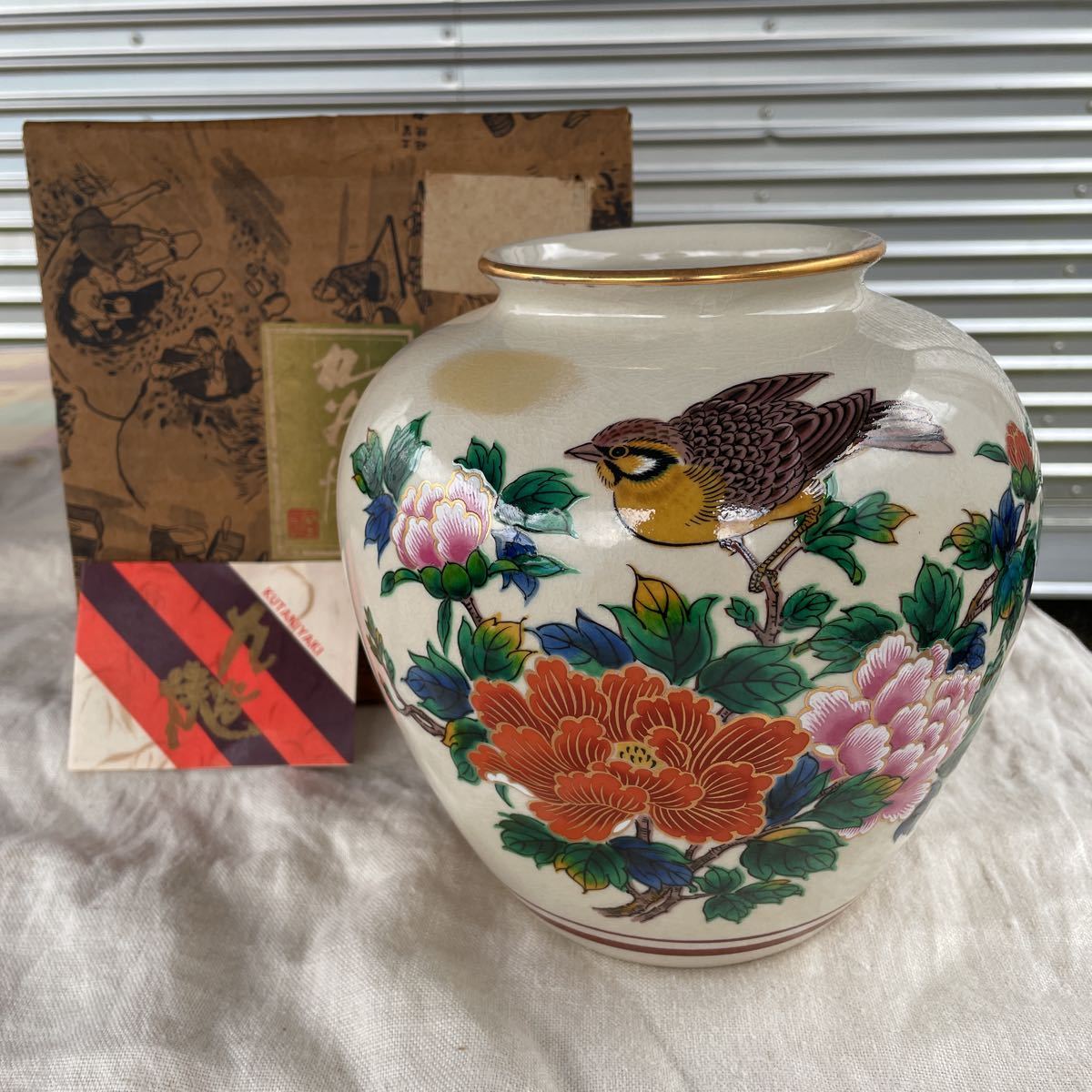 - ◎伝統工芸◎九谷焼◎牡丹◎花瓶◎箱痛み有り◎アンティーク保管◎Gー1205