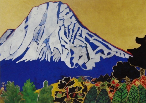 > 片岡 球子 「めでたき富士(山中湖にて)」 希少画集画、かたおか たまこ、富士山、日本の風景、福、縁起、送料無料・新品高級額装付、ami5