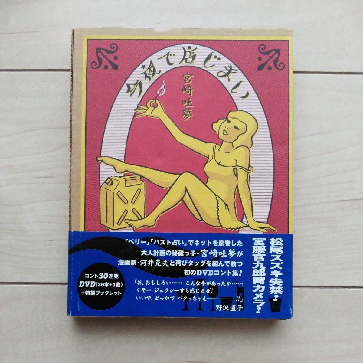 - ■『今夜で店じまい』宮崎吐夢著。漫画家河井克夫と組むDVDコント集特製Booklet。2006年第3刷筒状の凾帯付。講談社発行。★野沢直子帯文。