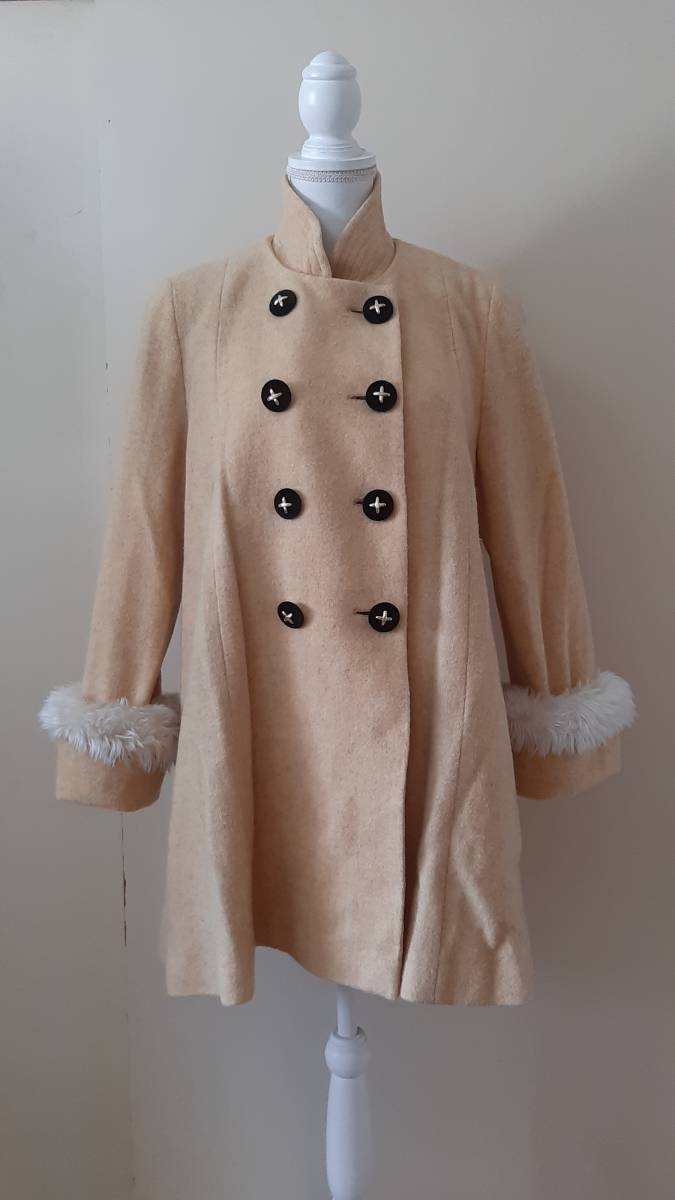 - No.1708_イエロー系袖ファー黒別珍ボタンAラインコート