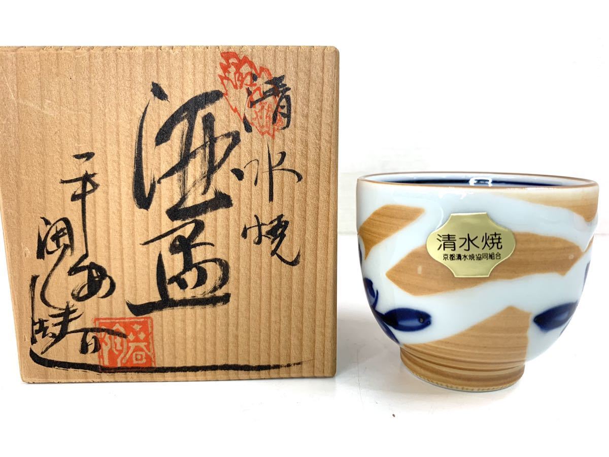 - 未使用品▲清水焼 京焼 陶春 酒盃 酒器 ぐい呑 お猪口 銘あり 1客 木箱入 管理2110 A-18