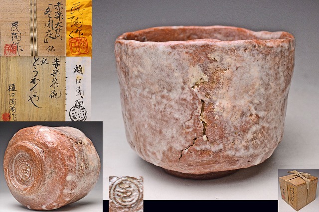 > 樋口民陶 ★ 赤楽 茶碗 ★ 共箱 共布 栞 ★ 銘:冬閑夜 ★ 造形良く景色の素晴らしい逸品 ★ 茶道具 ★ 検 黒楽 李朝高麗写 ★