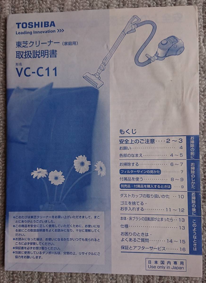 - 【中古】取扱説明書 東芝 掃除機 「VC-C11」