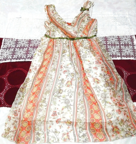 > アラブ風黄緑花柄シフォンノースリーブ ネグリジェ ハーフワンピース Arab-style yellow-green floral chiffon sleeveless negligee dress