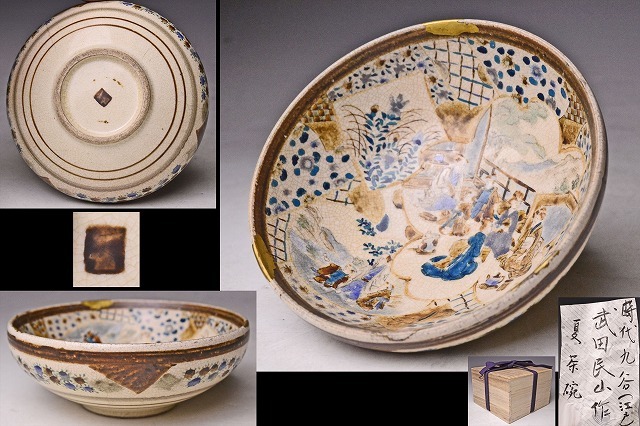 - 武田民山 か ★ 時代 九谷焼 ★ 色絵 夏茶碗 ★ 木箱 ★ 大らかな絵付に雅さがある逸品 ★ 武田秀平