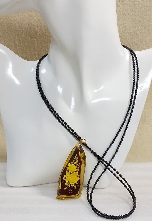 - ★最終80%OFF 琥珀 天然石 ネックレス イエローアンバー インタリオ彫り 薔薇 不定型 大粒 K18★AT1555-30