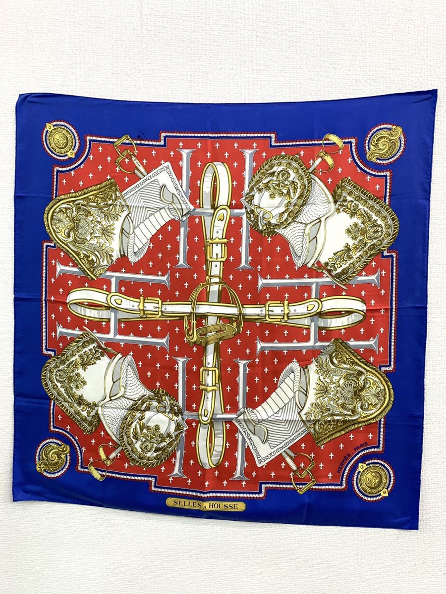 > 美品△HERMES エルメス SELLES HOUSSE スカーフ シルクスカーフ シルク100% 管理2111