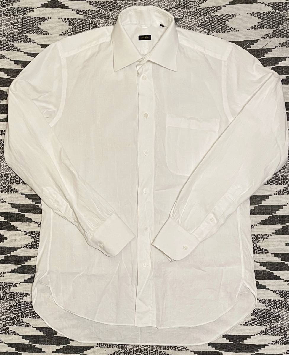 > 黄ばみ有コットン裾マチ付き背プリーツ格子地柄チェック織り柄ドレスシャツM38生成り白ナチュラル上位種アンティーク仕様ビンテージモデル