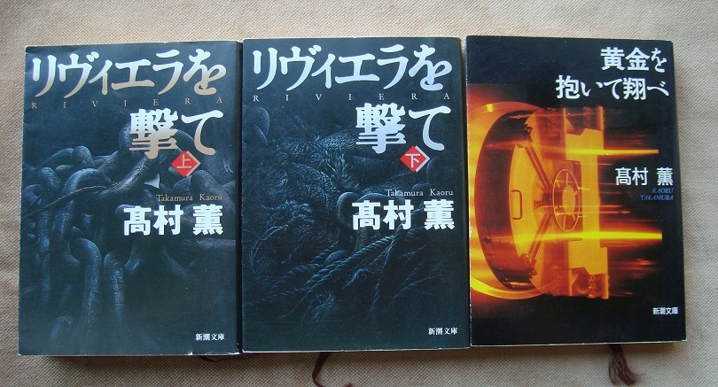 - 高村薫(新潮文庫)「黄金を抱いて翔べ」「リヴィエラを撃て(上、下)」計3冊 USED