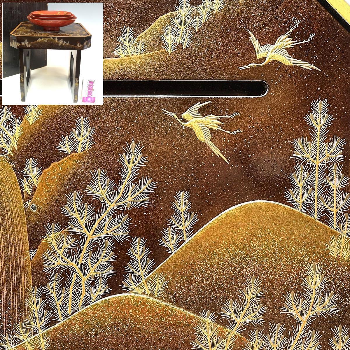 - 【趣楽】 明治時代 細密蒔絵山水蒔絵に双鶴図盃セット 酒器 本物保証 X1551