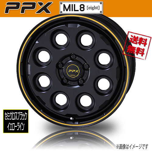 ホイール新品 4本セット 保証書付 共豊 PPX Mil:8 SGブラック/イエローライン 16インチ 5H114.3 7J+38 73 業販4本購入で送料無料