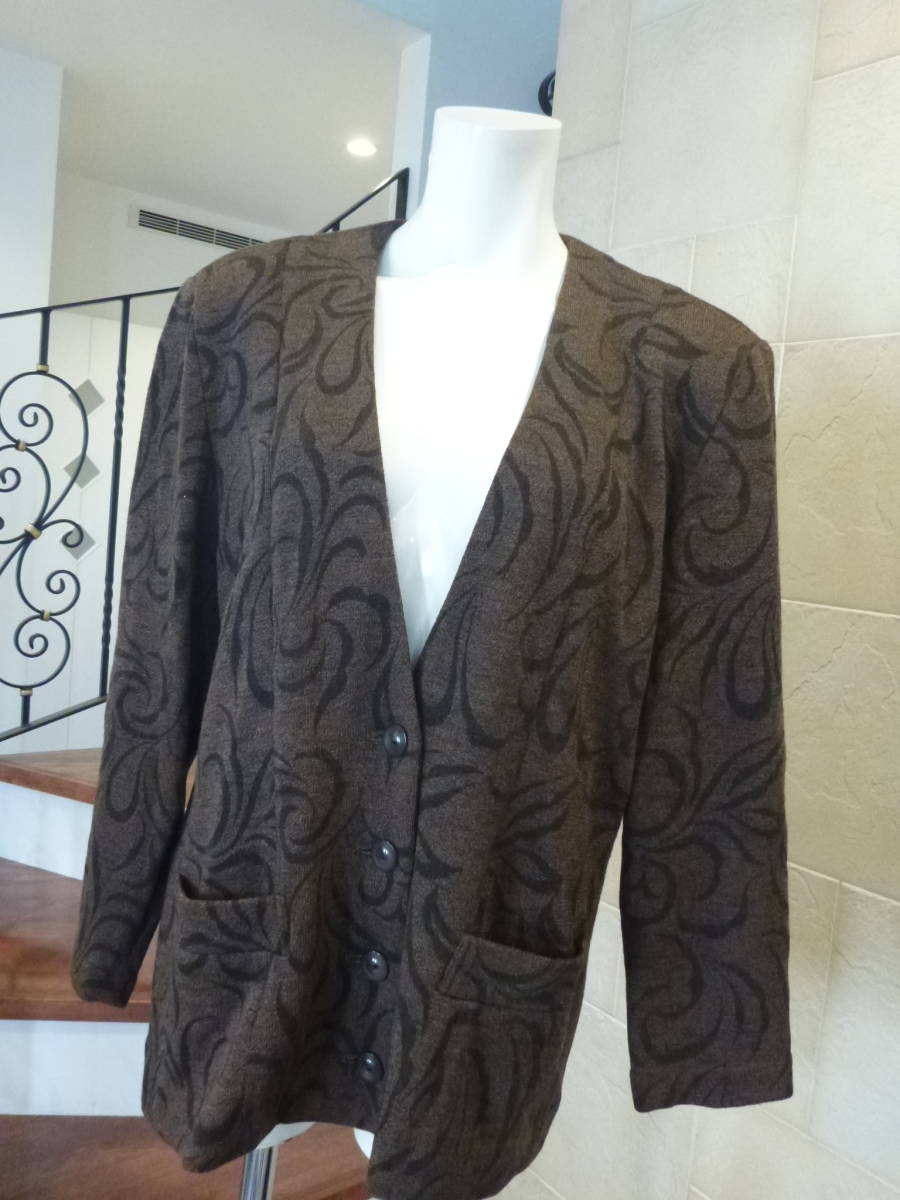 - 美品 ELIZABETH MAMBRINI ★日本製 茶×黒 ニットジャケット LL 大きめ