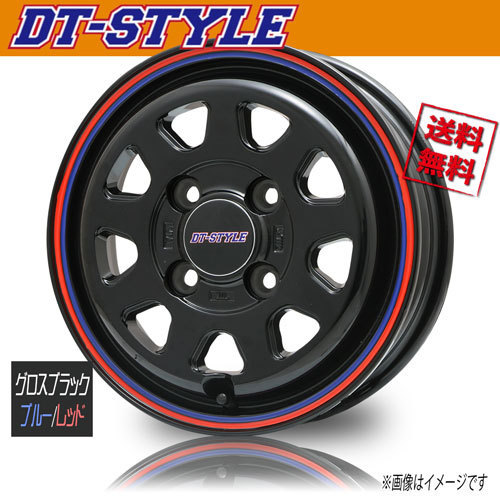 ホイール新品 1本のみ BIGWAY DT-STYLE グロスブラック/ブルーレッドライン 14インチ 4H100 4.5J+43 67.1 業販4本購入で送料無料