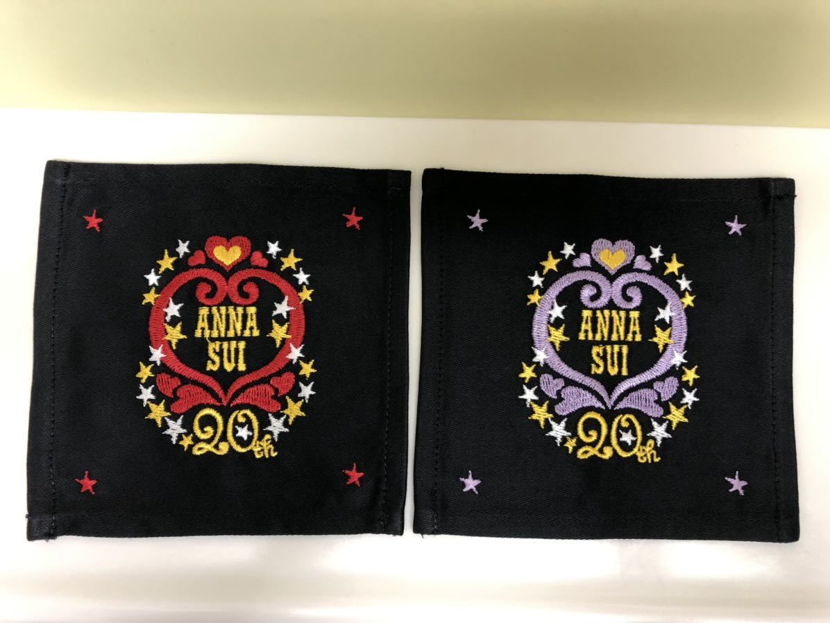 > 送料込み 未使用 ANNA SUI アナスイ ノベルティ 刺繍 コースター 2枚セット 赤 紫 布製 20周年 20th