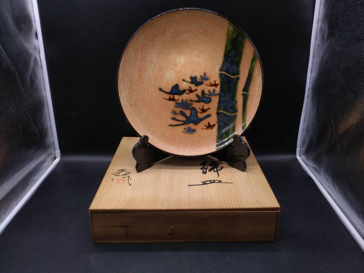 - 〇 飾皿 / 美術品 骨董品 台付 共箱 作家物 飾物 置物 オブジェ インテリア 工芸品 陶磁 陶器 陶芸 コレクション 真作