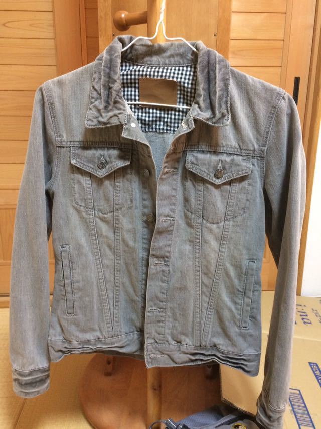 - 中古 デニムのジャケット Gジャン グレー 灰色 おしゃれ Mサイズ ジージャン