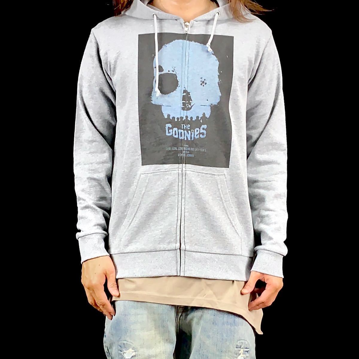 > 新品 グーニーズ ドクロ スピルバーグ 海賊 パイレーツ 宝探し 冒険 80's映画 ジップアップ パーカー Mサイズ タイト ワイド フィット UNI