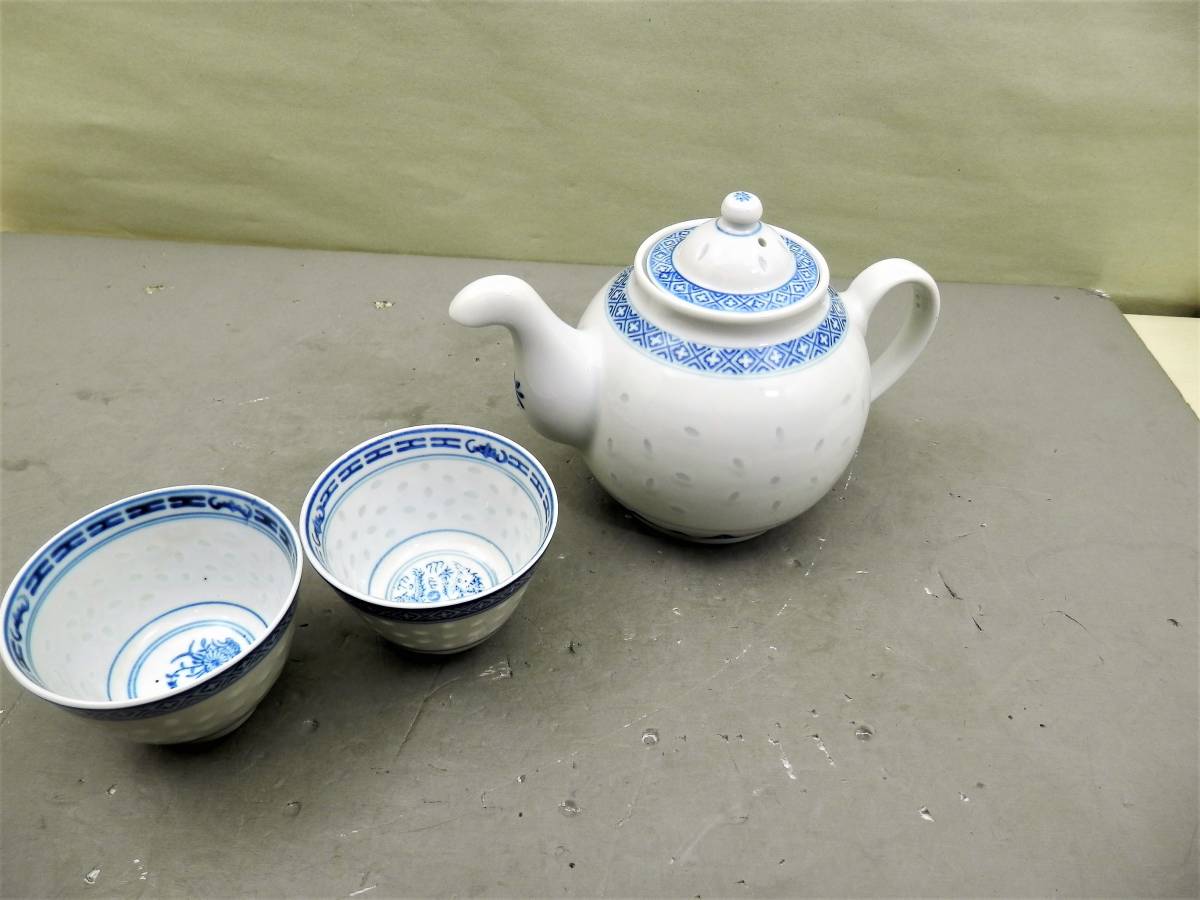 - 中国陶器 茶注ぎ ポット 湯呑付 現状品 売り切り