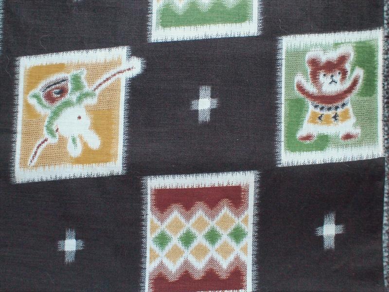 - アンティーク面白図柄着物生地ハギレ*未使用・カスリ可愛い動物お相撲さん・染め・綿・34×61☆コレクション